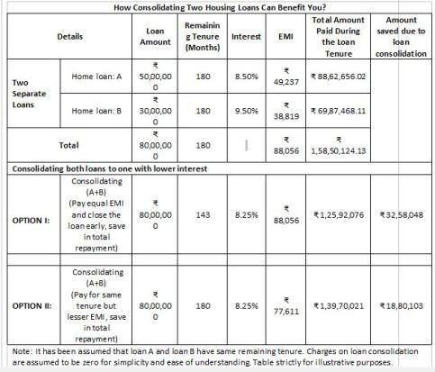 Let’s understand how much money you can save by consolidating two home loans with the help of an example below: