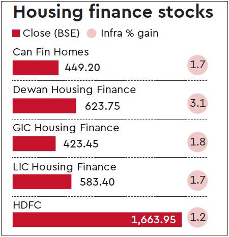 Stocks of housing finance companies gained momentum on Thursday after the Cabinet approved the enhancement of the carpet area of houses eligible for interest subsidy under the credit-linked subsidy scheme (CLSS) for the middle income group (MIG) under Pradhan Mantri Awas Yojana (Urban) scheme. Reacting to the announcement, the shares of Can Fin Homes surged over 5% to end the session at Rs 449.20, up 2.7%, while Dewan Housing Finance (DHFL) gained 3.1% during the day. GIC Housing Finance and LIC Housing Finance gained 1.7% each in intra-day trade. The country’s largest mortgage lender HDFC gained close to 1% to close the session at Rs 1,663.95 on the BSE. Under the PMAY-U scheme, the interest subsidy will be provided on loans for construction/acquisition of house with carpet area of up to 120 square metres, against the earlier threshold of 90 square metres. For MIG-II category, the area has been increased up to 150 square metre from the current 110. The changes will be effective from January 2017. Shares of housing finance companies were under pressure due to the prevailing sluggishness in the realty sector.