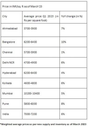 The report indicates that the average price per square foot in cities such as Ahmedabad, Bengaluru, Delhi NCR, Kolkata, and Pune has witnessed a significant increase.