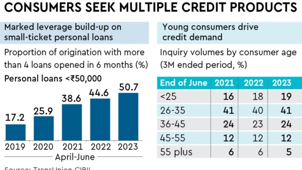 Those with multiple loans are considered riskier and have to pay higher interest rates. In fact, a TransUnion CIBIL shows in the three months to June this year, 50% of consumers who availed small-ticket personal loans already had more than four credit products at the time of availing a new loan, compared to 17% in the same period of 2019.