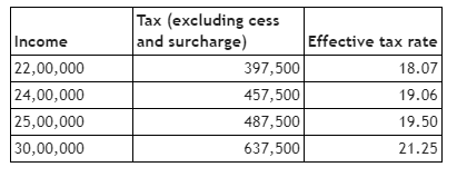 Gupta said that AMT provisions are not applicable for income up to Rs 20 lakh. Hence, on a comparison of the new regime with AMT, for income above Rs 20 lakh, the effective tax rate works as follows:
