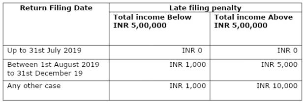If the return is not filed by the due date, i.e. 31 July 2019, individuals can still file a “belated return” by 31 March 2020. However, they will face the following consequences: