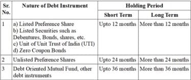 Taxation of Capital Gains under the Income Tax Act 1961 (“the IT Act”) depends on whether the asset classifies as a Long Term Capital Asset or a Short Term Capital Asset depending upon the period of holding of such asset. Section 2(42A) of the IT Act provides for period of holding as a basis to determine whether the debt instrument would be classified as a Short Term Capital Asset. However, the threshold period of holding for classification into short term and long term depends upon the nature of the debt instrument.