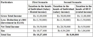 Thus, there is a significant tax savings of Rs 2,36,600 by way of HUF.