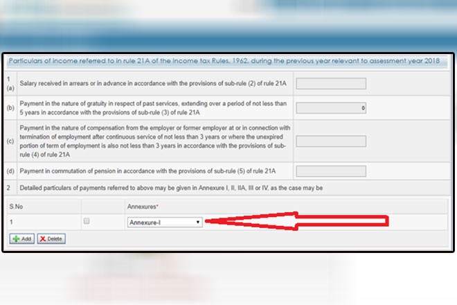 Annexure I: This Annexure has to be filled if the employee wants to claim relief in respect of Salary received in arrears or advance or family pension received in arrears or premature withdrawal from Provident Fund.
