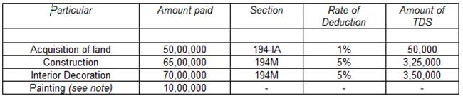 Note: Since amount paid is less than Rs 50 lakh, no tax is required to be deducted.