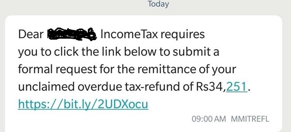Tax experts say that in such cases a fake email or SMS is sent to the user stating that his/her income tax refund has been approved. “The amount of refund sanctioned also looks genuine as they don’t mention a round figure, but an exact figure with decimals. (See a sample message below). The fraudsters then mention that for the Income Tax Department to transfer the refund to his bank account, the user is required to share their bank details with the income Tax Department. The common man, thus, gets excited that his refund has been approved and shares all his bank details. He also furnishes his debit card details as well as the CVV No. which was never required,” informs CA Karan Batra, Founder & CEO of CharteredClub.com.