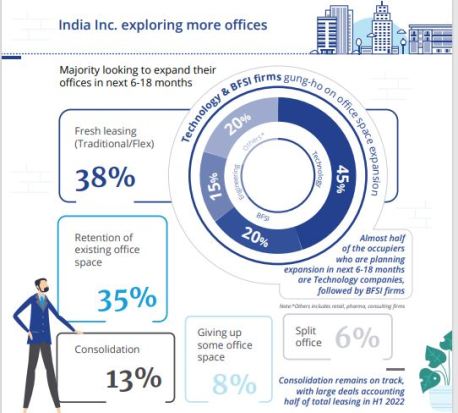 About 35% of the firms are willing to set up flex office spaces in non-metro cities to cater to changing employee needs.
