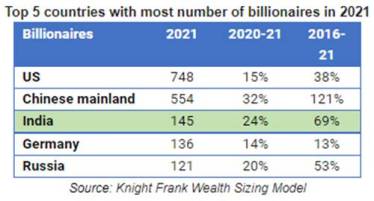 As per the report, equity markets and digital adoption have been key factors driving growth in the super rich category of India. Around 69% of the super wealthy individuals in India is expected to witness an increase of over 10% in their net worth in 2022. Asia continues to be the forerunner in the billionaires’ club contributing to 36% of the total billionaires in the world in 2021. India has ranked 3rd in terms of billionaires’ population in 2021, following the US and China.