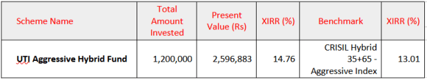 UTI Aggressive Hybrid Fund – 10 Year SIP