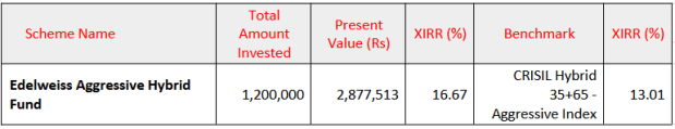 Edelweiss Aggressive Hybrid Fund – 10 Year SIP