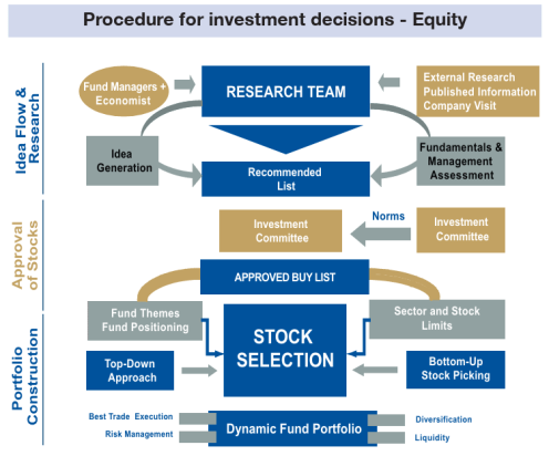 The fund follows a mix of both top-down and bottom-up approaches to stock picking for a dynamic fund portfolio.