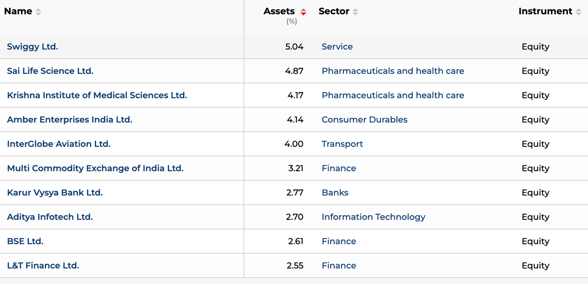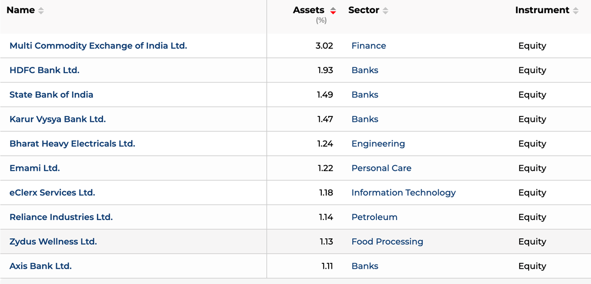 Other than smallcaps and midcaps, the fund is also holding certain heavyweights, such as Reliance Industries, HDFC Bank, SBI, etc., in its top holdings.