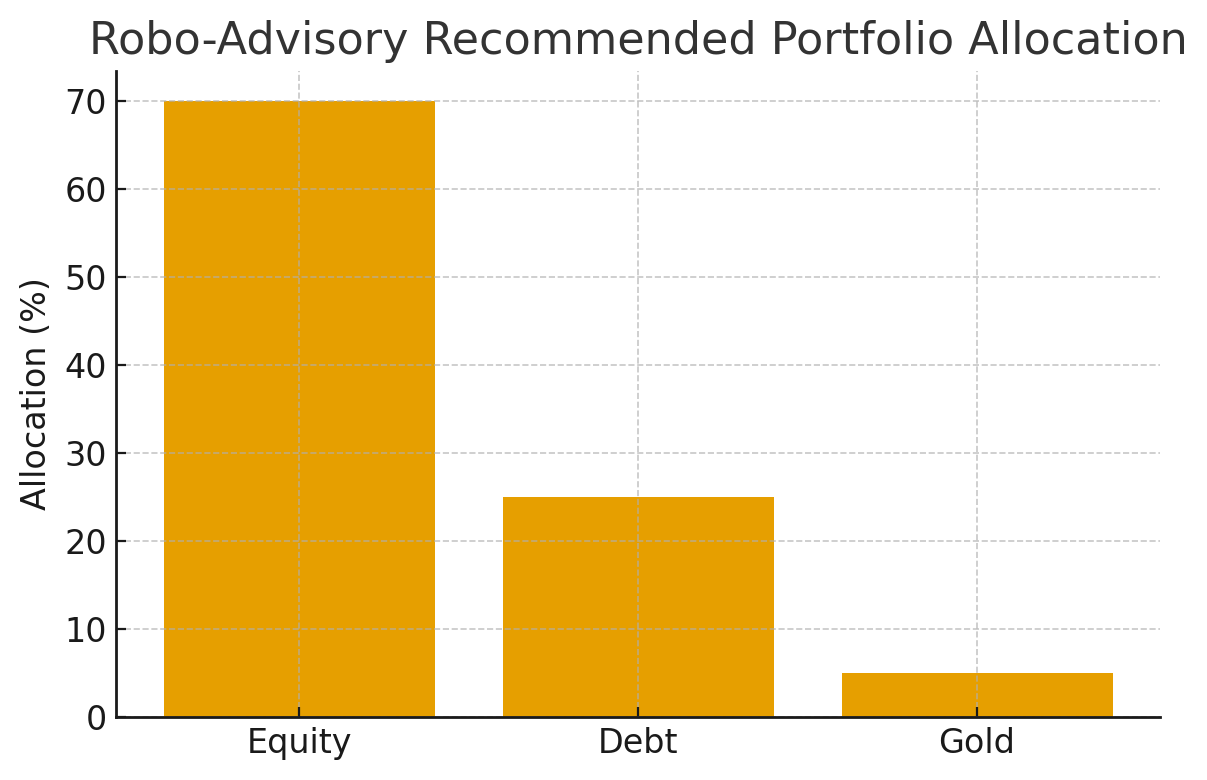 The platform responded with a portfolio that was nothing like my dad’s. It was clean and mathematically balanced: 70% equity, 25% debt, 5% gold.