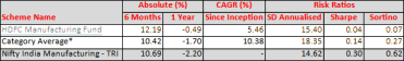 HDFC Manufacturing Fund has, over the last 6 months and 1 year has clocked an absolute return of 12.2% and -0.5%, respectively, better than the category average returns and its benchmark.