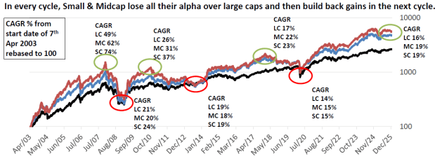 These funds are fundamentally different from large and mid-cap funds. They operate in a segment where liquidity is thin price discovery is slow, and volatility is structurally high. They outperform in upcycles and give all almost all the returns in downcycles.
