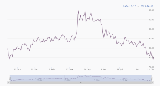 Gold Silver Ratio (1 year)