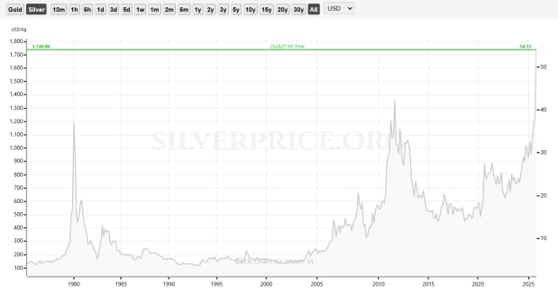 Silver Price Trend (1975-2025)