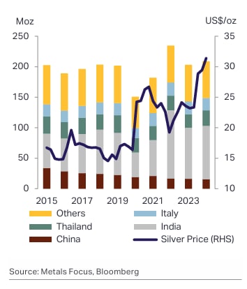 India is a major and unique market for silver because retail demand (coins, bars, jewellery), industrial use and festival/ritual buying overlap.