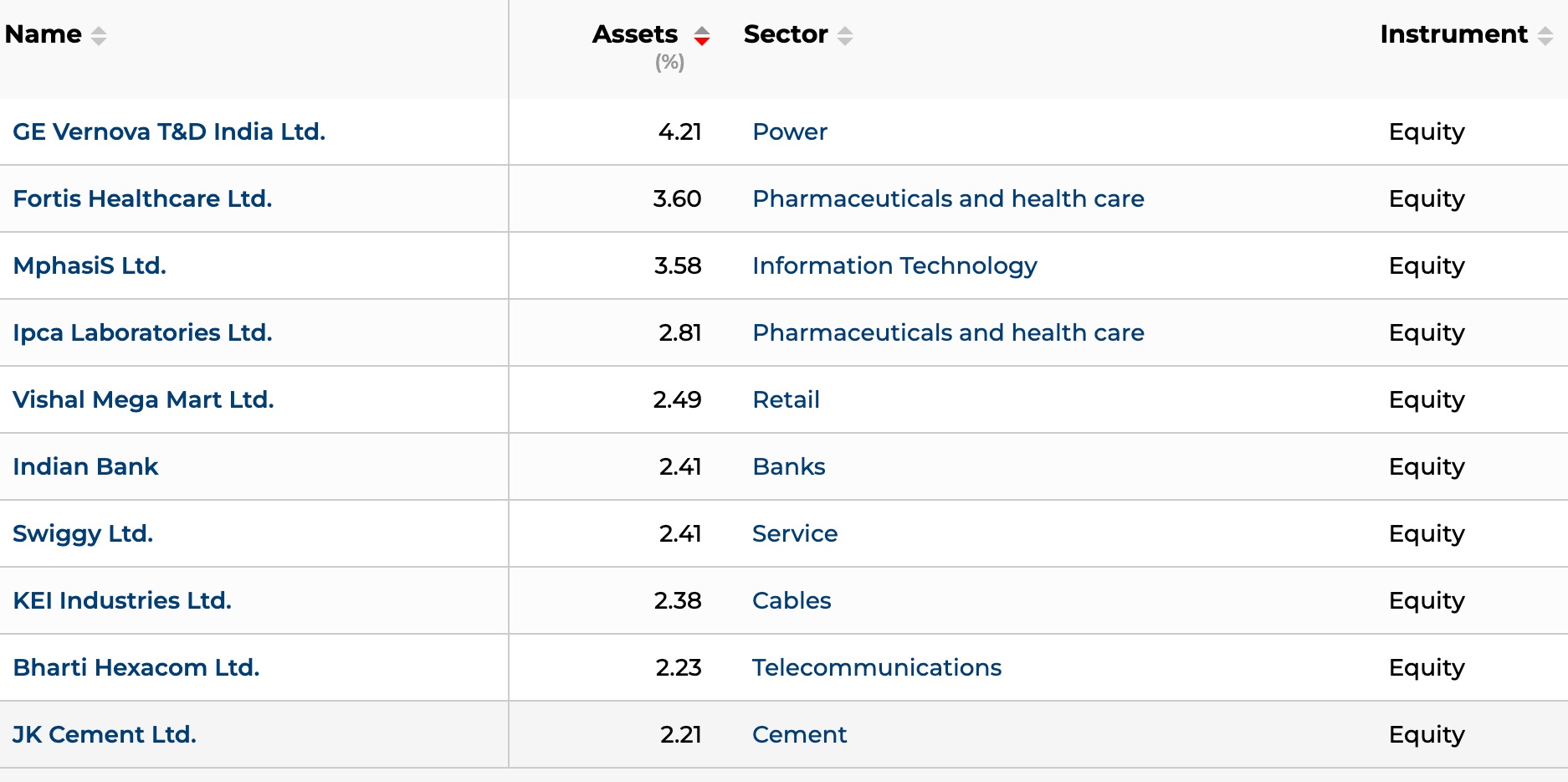 In line with its mandate, around 69% of its assets are in midcaps, 22% in smallcaps, and 9% in largecaps.