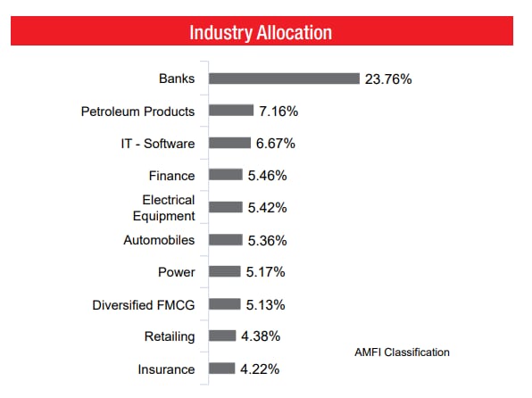 This fund has been around for more than 15 years, and has shown a tendency to take a slightly broader approach to stock selection. It holds dominant names from banking and energy, but also allocates meaningfully to services, a category that does not feature as prominently in most large cap funds.