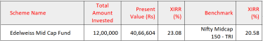 Edelweiss Mid Cap Fund – 10 Year SIP