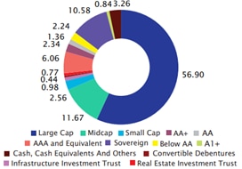 As of 30 September 2025, the fund managed assets worth Rs 790.6 billion (bn). The portfolio shows a strong focus on equity (around 56.9%), while the remaining allocation is spread across debt, money market, REITs, and InvITs.