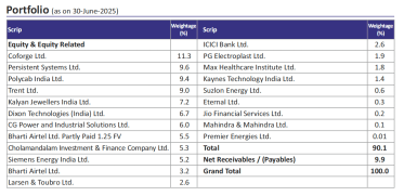 A good example of a fund with a different and thoughtful approach is the Motilal Oswal Flexi Cap Fund. If you look at its portfolio as of June 2025, the top holdings include Coforge, Persistent Systems, Polycab, Trent, Kalyan Jewellers, Dixon Technologies, and CG Power.