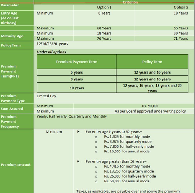 - Complete Flexibility: You can choose combination of Premium Payment term and policy term to align it with your milestone