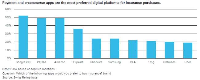 Digital wallet and e-commerce apps are most suitable for online insurance distribution