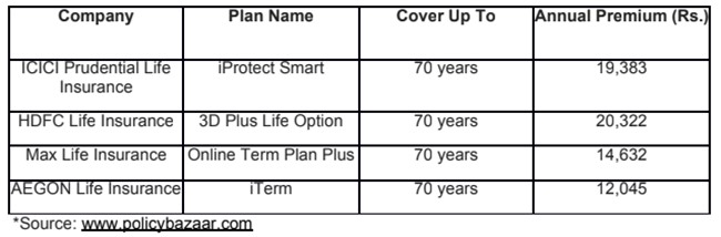 Below are price comparisons of Term Insurance offered by 4 prominent insurers for a 30-year-old male non-smoker residing in a metro city. The total sum assured is Rs 1 crore.