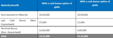 Premium Offset feature: A policyholder who has chosen regular premium payment option will be able to adjust the premium payable against cash bonuses, provided that the frequency and timing of bonus payments match premium payment.