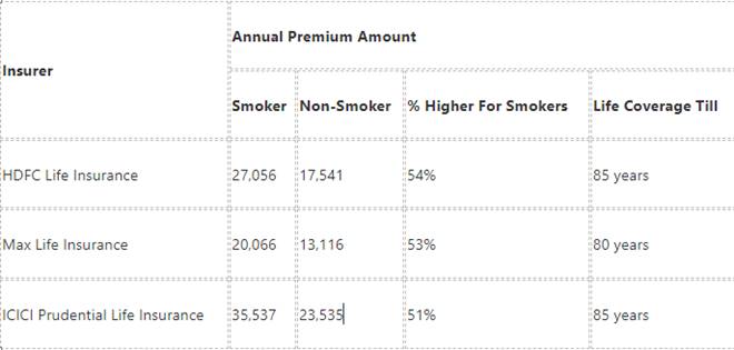 Life Insurance Rates for Smokers vs Non-Smokers (30 y/o Male, earning 10L+, looking For 1 Crore Life Coverage)