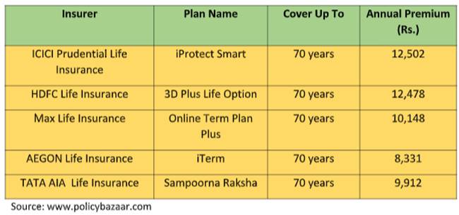 Below is the price comparison of Term Insurance plans offered by 5 prominent insurers for a 30-year-old, non-smoker man, residing in a metro city. The total sum assured is Rs 1 crore.