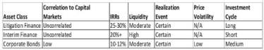 a) Litigation Finance: Litigation finance (also called litigation funding) is the practice where a third party unrelated to the lawsuit provides capital to a plaintiff involved in litigation in return for a portion of any financial recovery from the lawsuit. It unlocks the value of legal claims by providing capital to plaintiffs before their cases are resolved. Investors contribute amounts in an SPV (special purpose vehicle) that further invests in various types of underlying investments based on the pre-agreed thesis.