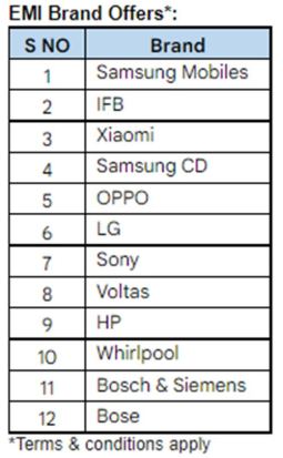 Customers can purchase a range of products like electronics and smartphones from Samsung, OPPO, Xiaomi, IFB etc,. using EMI options on KMBL debit and credit cards. Mega discounts and cashbacks are available during sale on platforms like Amazon.in, Flipkart, Reliance Digital, Myjiostore, Croma, Myntra, AJIO, PUMA, Zomato, EazyDiner, Dmart, Jiomart.com, bigbasket, MakeMyTrip, EaseMyTrip, Cleartrip, Yatra, Urban Company, TATA 1mg and many more.