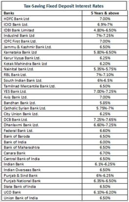 Tax-saving FDs are a secure investment for those looking to save on taxes while earning a steady return. However, you must compare returns vis a vis other investment options and can determine whether tax-saving FDs are the right fit for your investment portfolio. The table below compares the interest rates of 5-year tax-saving FDs of more than 30 public and private sector banks, including SBI, HDFC Bank, Axis Bank, ICICI Bank, BoI, PNB and Union Bank. You can check and decided based on your goals.