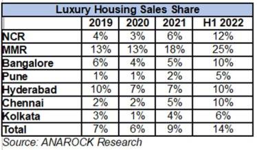 MMR and NCR have led luxury home sales with H1 2022 seeing close to 17,830 units sold in these two cities alone. In 2019, they accounted for a mere 11,890 luxury homes sold in the entire year.