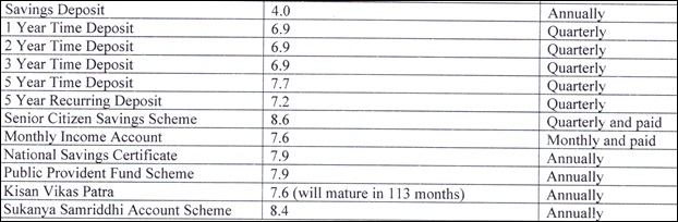 It was felt that even though RBI has been cutting the repo rate, the interest rate on bank fixed deposits did not fall much. One of the reasons cited was the higher rates on post office schemes as they offered an alternative to bank FD schemes. With the PO rates not coming down in a hurry, the bank FD rates may not witness any further lowering of interest rates.