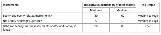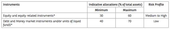 The scheme seeks to generate income and capital appreciation by investing in a diversified portfolio of equity and equity-related instruments and fixed income instruments. However, there can be no assurance that the investment objectives of the scheme will be realized. The scheme does not guarantee/ indicate any returns.
