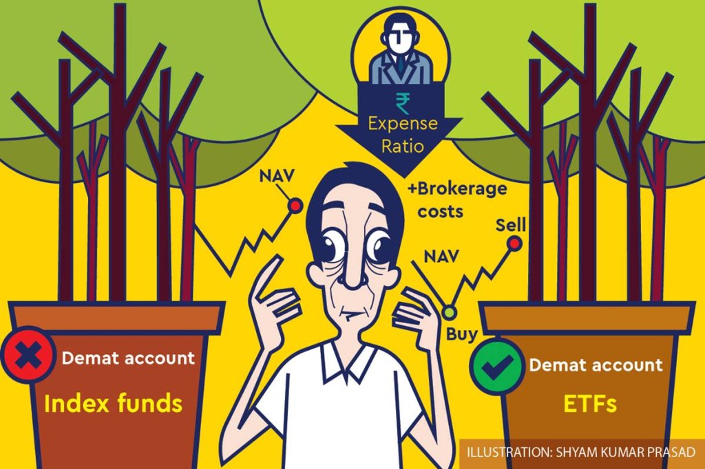 Units of ETFs trade on the exchange like equity stocks or other securities. You have to have a demat account and a trading account with a broker. Nowadays, everything is online, including trading on the exchange. There are mobile phone apps that facilitate trading in stocks, including ETFs. Index funds are like any other mutual fund scheme. You purchase from the AMC and redeem with the AMC. Nowadays this also is executed online. Paper-based / physical execution is possible, but in days to come it may become fully digitalised.