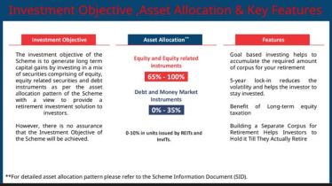 The investment objective of the scheme is to generate long-term capital gains by investing in a mix of securities comprising of equity, equity related securities and debt instruments as per the asset allocation pattern of the scheme with a view to provide a retirement investment solution to investors.