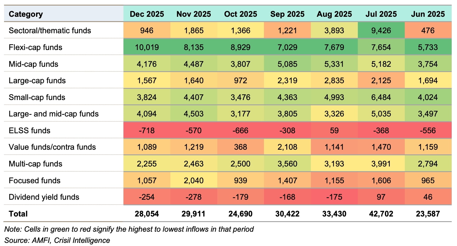 While the equity fund assets touched Rs 37.53 trillion in December 2025, the inflows have been mainly driven by mid cap funds, small cap funds, flexi-cap funds and sector & thematic funds.
