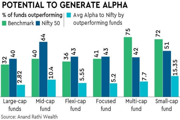 Feroze Azeez, deputy chief executive officer, Anand Rathi Wealth, says investors should keep in mind that as index funds follow a benchmark with a tracking error, there is a potential for a 1% alpha loss. “As the category follows the benchmark, it does not have high downside protection when compared to any actively managed fund,” he says and adds that investors should understand the alpha generation potential of the other categories before investing in passive funds.