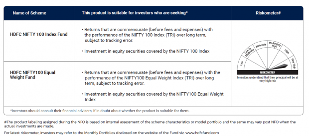 The company claims that both NFOs are aimed at investors who are looking for returns that are commensurate with the performance of the NIFTY 100 Index and NIFTY100 Equal Weight Index respectively, subject to tracking errors.