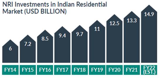 NRI investments in FY 14 were pegged at $6 billion. Since then, they have gone from strength to strength, reaching $13.3 billion in FY 21, growing by a CAGR of slightly over 12%. Investments from the NRI will continue to spiral upwards in the coming quarters. The pivot to digital will be a major game-changer. In the wake of the current crisis, both developers and brokerages have understood the significance of building digital assets across the value chain.