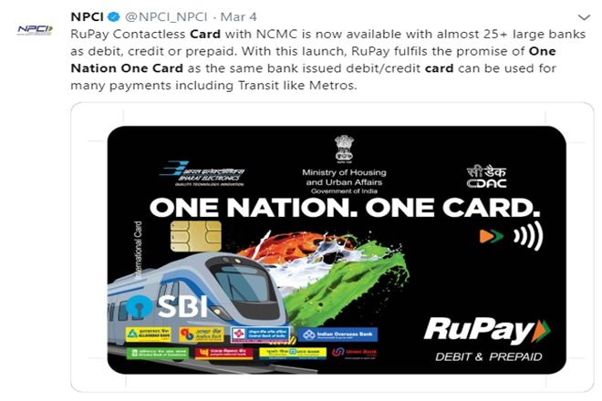 – In the form of debit, credit or prepaid card, this RuPay Contactless Card with NCMC is now available with almost 25 large banks. Banks, including SBI, Allahabad Bank, Indian Overseas Bank, UCO Bank, Union Bank, and PNB, are offering debit, credit or prepaid cards. It can also be issued from the Paytm Payments Bank.