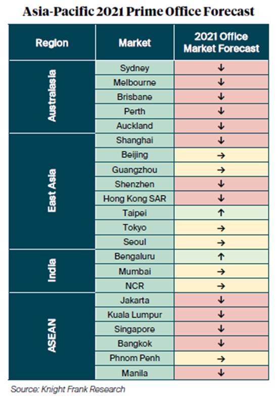 India’s office market will remain resilient in the new year, reveals a Knight Frank report, although the Asia-Pacific prime office rents are expected to decline between -3% and 0% in 2021.