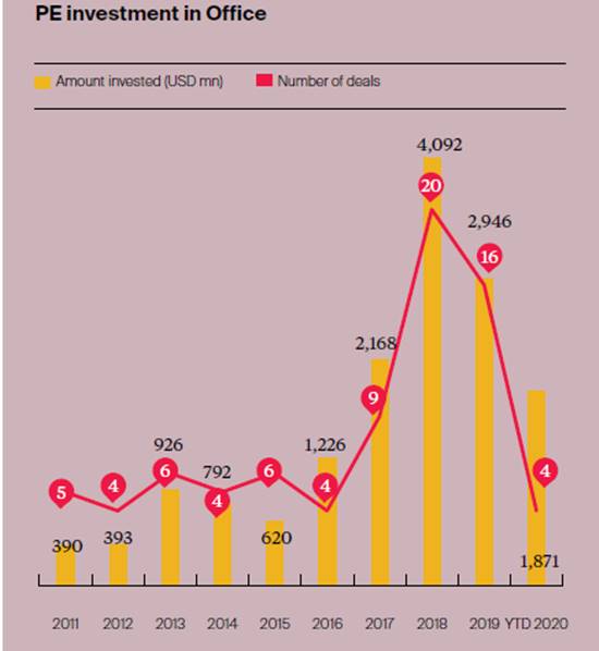 “Despite a slowdown in overall PE investment, therefore, we continue to witness strong investor appetite for rent yielding office assets. The PE investments in office in 2020 may surpass the previous year numbers if the deals in the pipeline are concluded,” says Knight Frank India.
