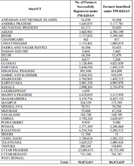 registered under PM-KISAN out of which 84,472,629 beneficiaries have received benefits under the Scheme till 06.02.2020.